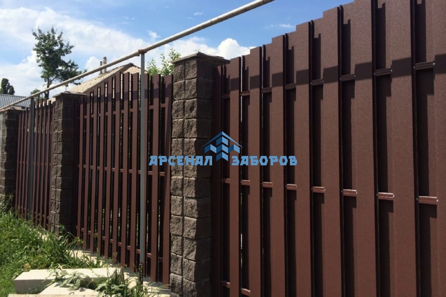 Забор из евроштакетника с кирпичными столбами