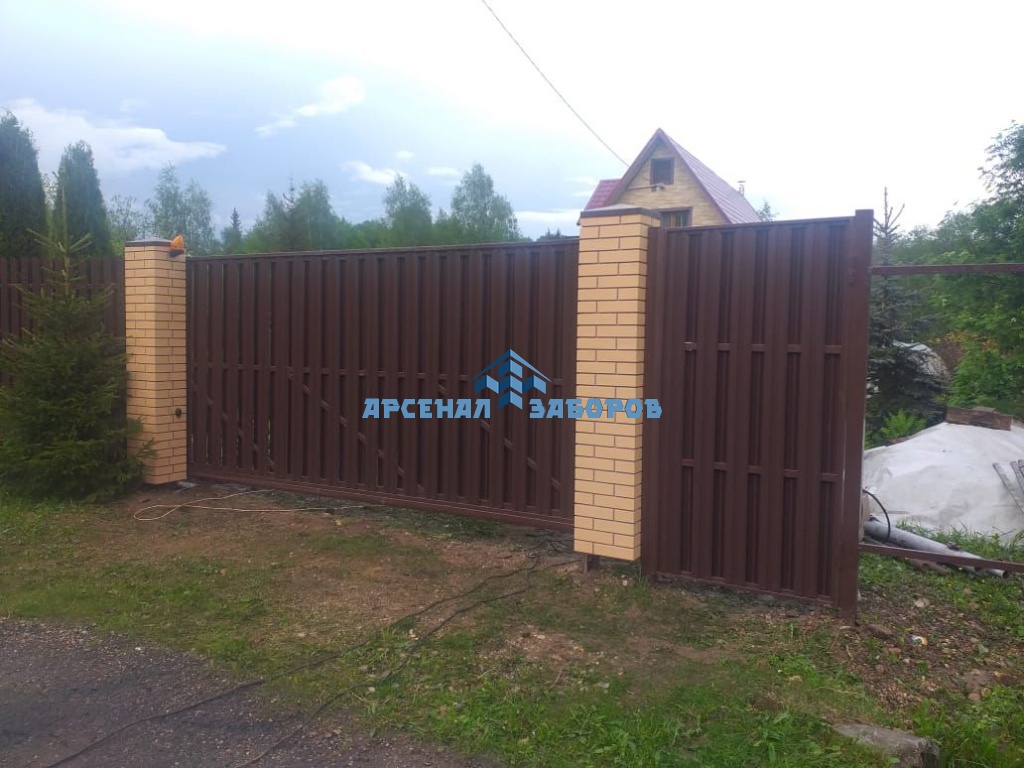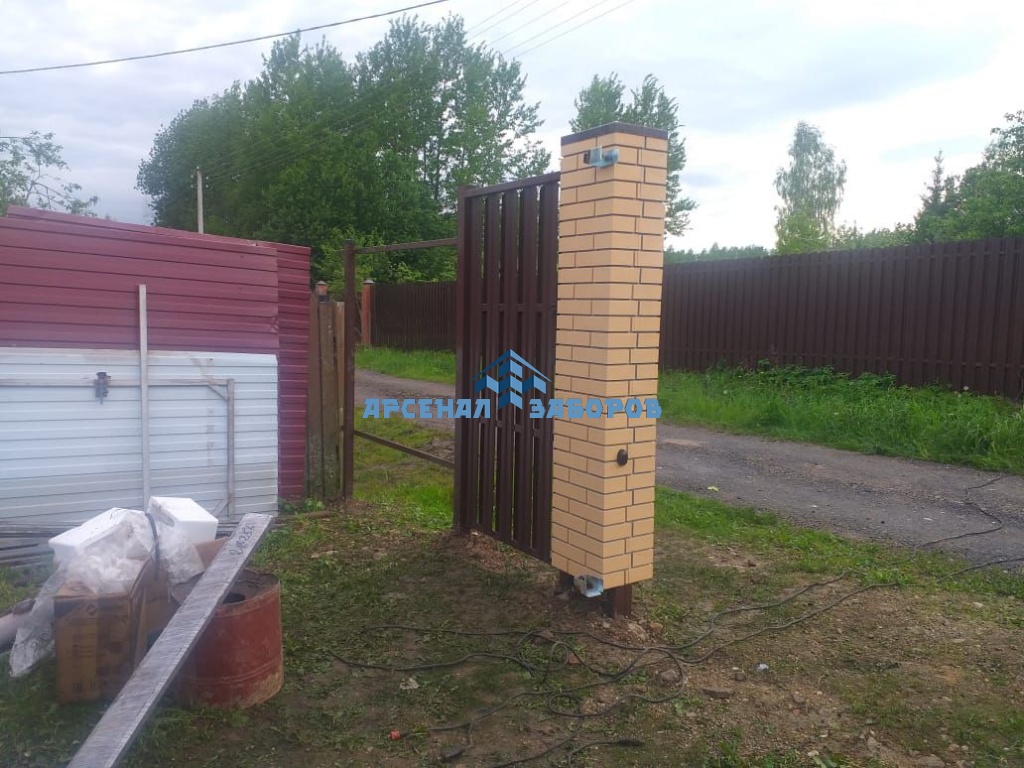 Забор из евроштакетника с кирпичными столбами