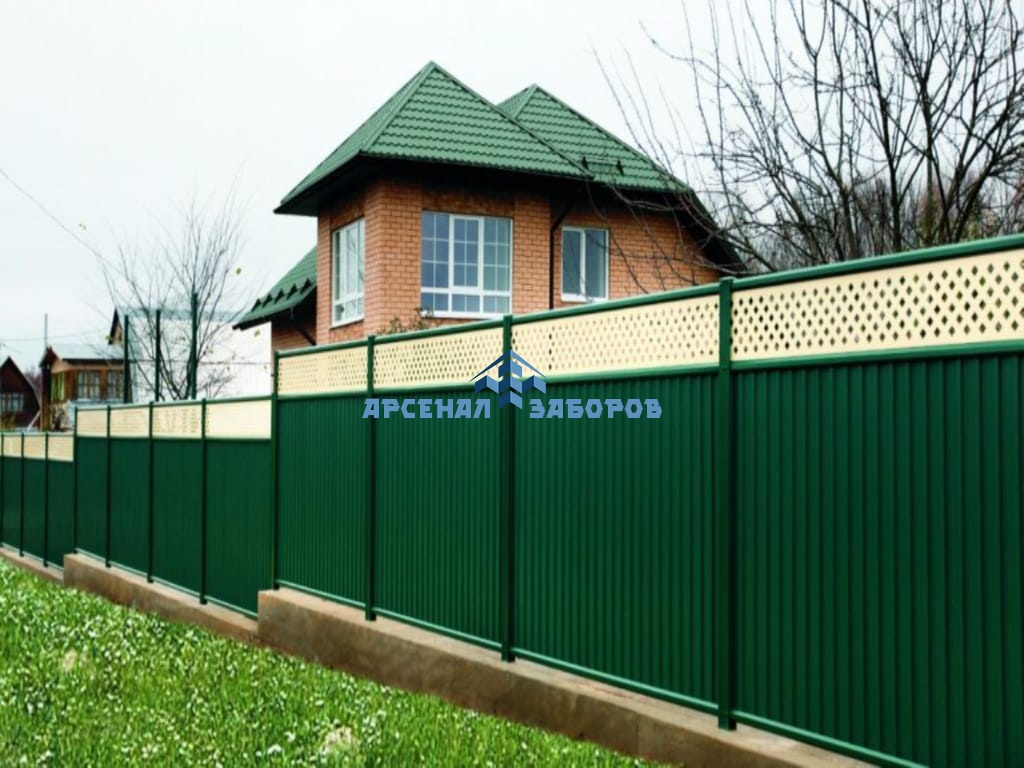 Конструкция забора из профлиста на ленточном фундаменте и с кирпичными столбами