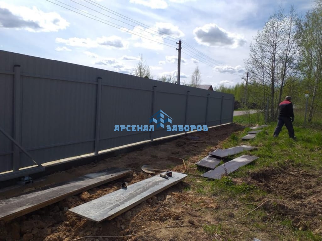Конструкция забора из профлиста с забивными столбами