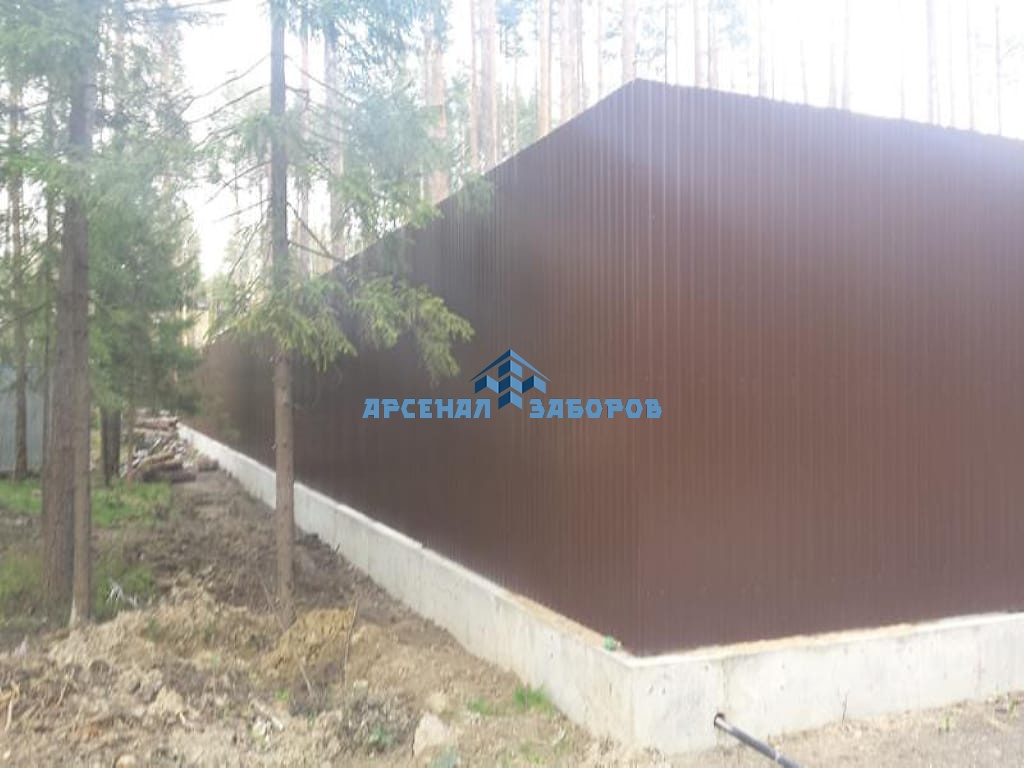 Конструкция забора из профлиста на ленточном фундаменте и с кирпичными столбами