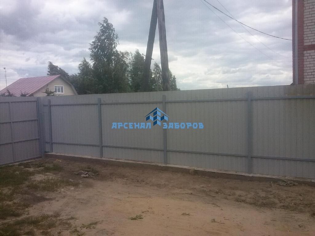 Конструкция забора из профлиста на ленточном фундаменте и с кирпичными столбами