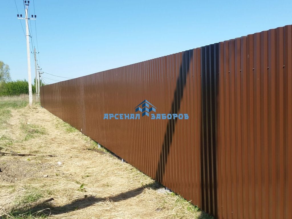 Конструкция забора из профлиста на ленточном фундаменте и с кирпичными столбами