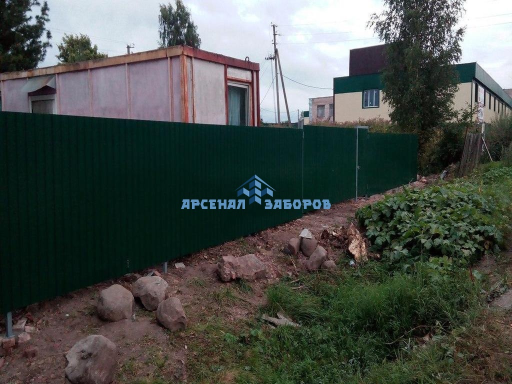 Конструкция забора из профлиста на ленточном фундаменте и с кирпичными столбами