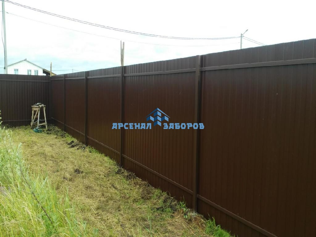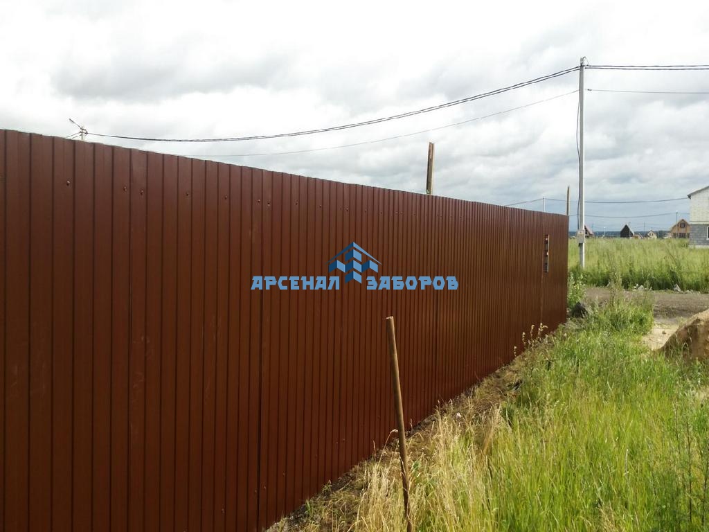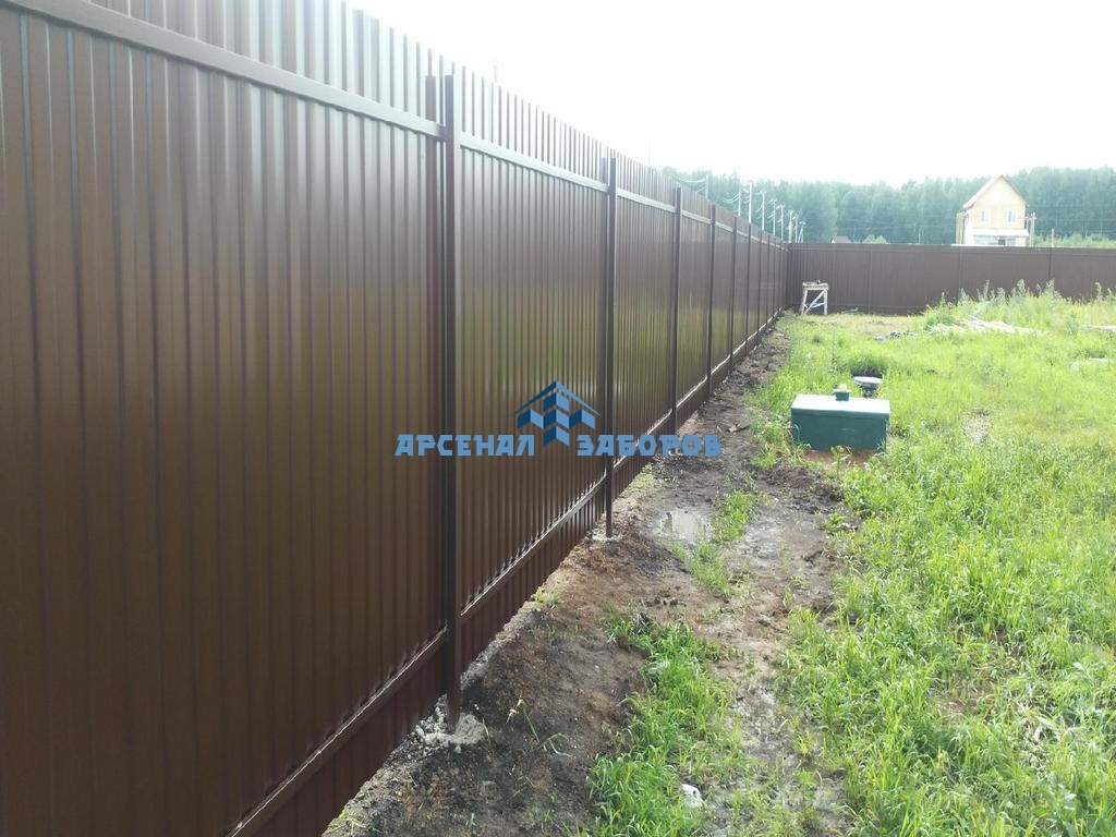 Конструкция забора из профлиста на ленточном фундаменте и с кирпичными столбами