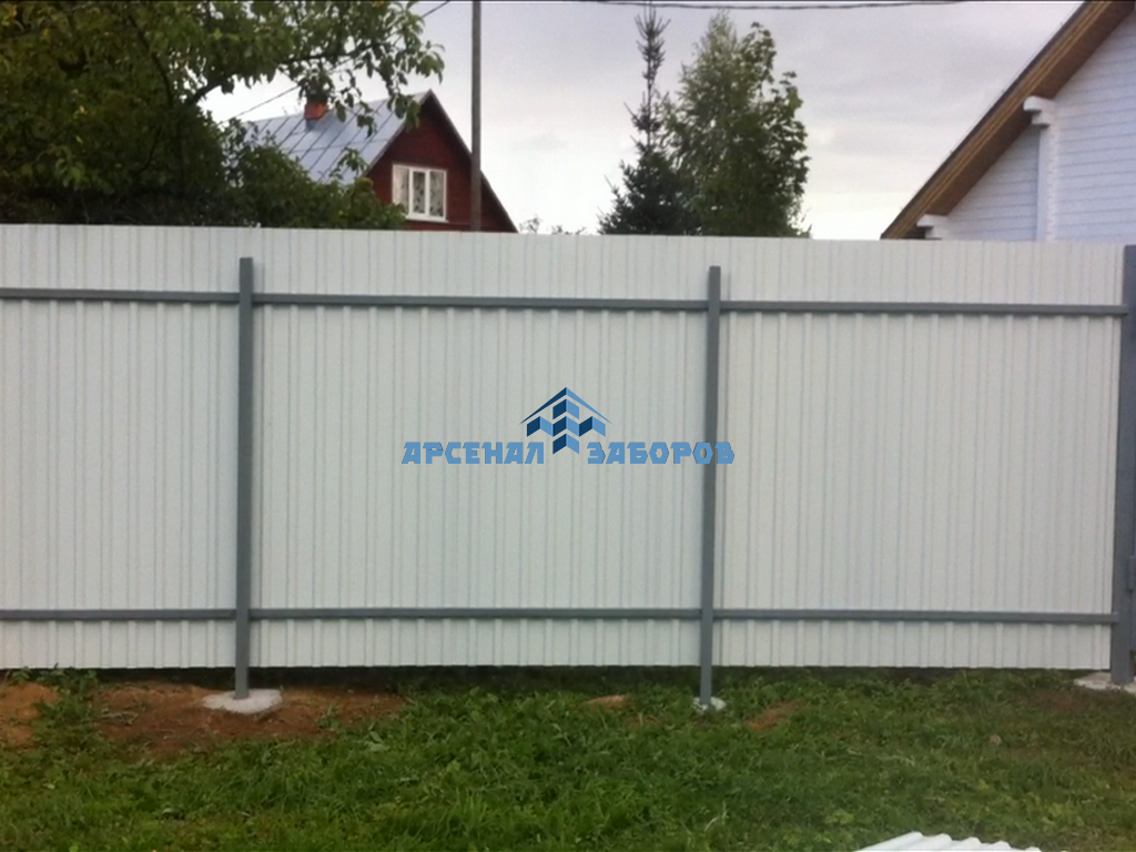 Конструкция забора из профлиста на ленточном фундаменте и с кирпичными столбами