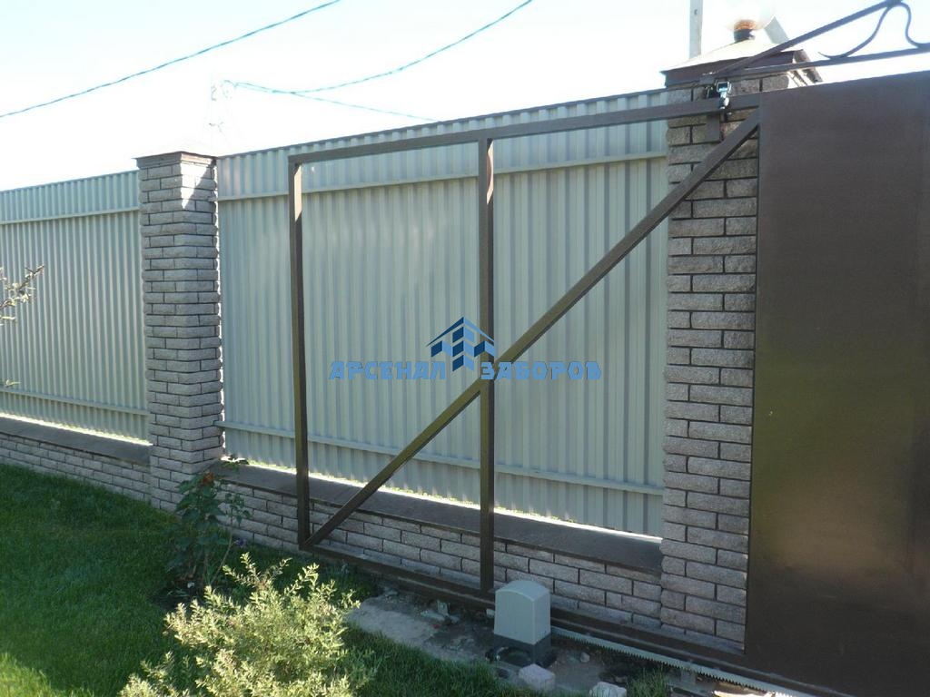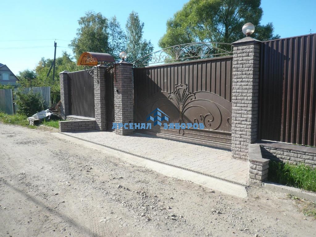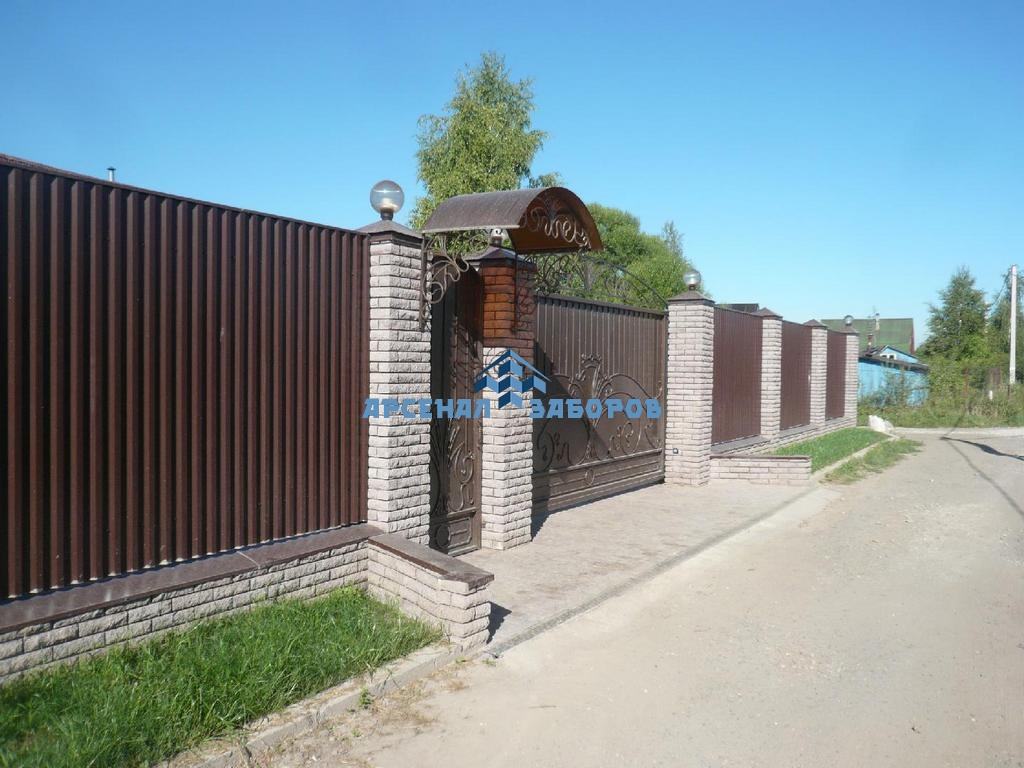 Конструкция забора из профлиста на ленточном фундаменте и с кирпичными столбами