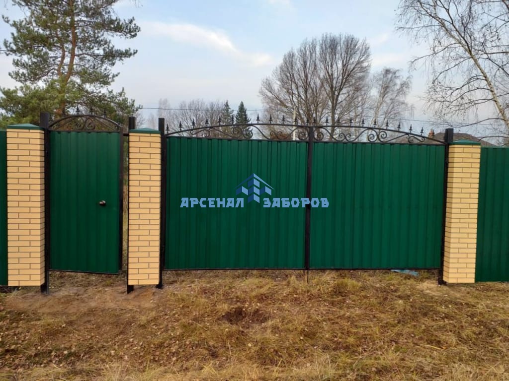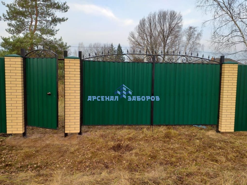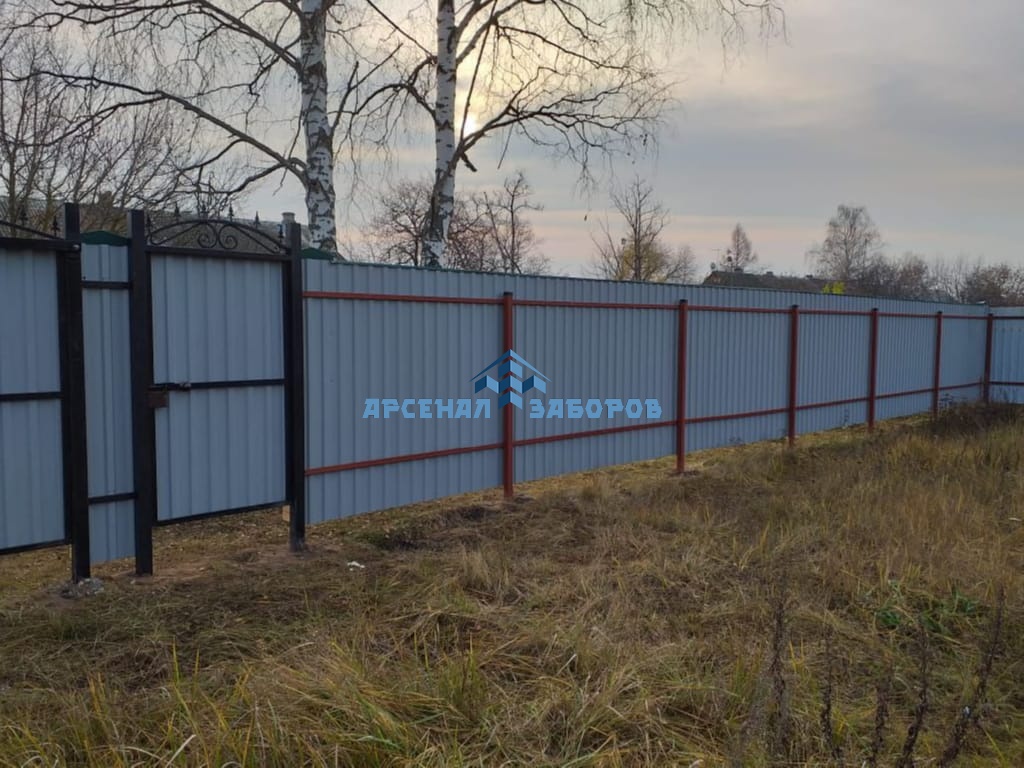 Конструкция забора из профлиста на ленточном фундаменте и с кирпичными столбами