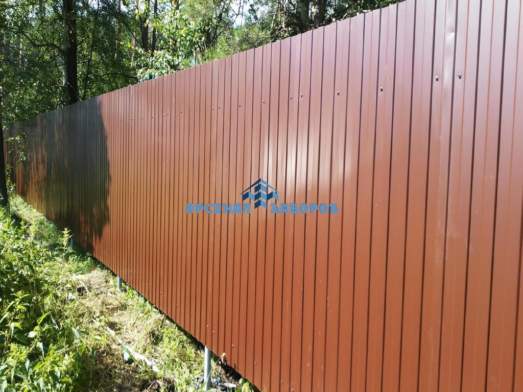 Конструкция забора из профлиста на ленточном фундаменте и с кирпичными столбами