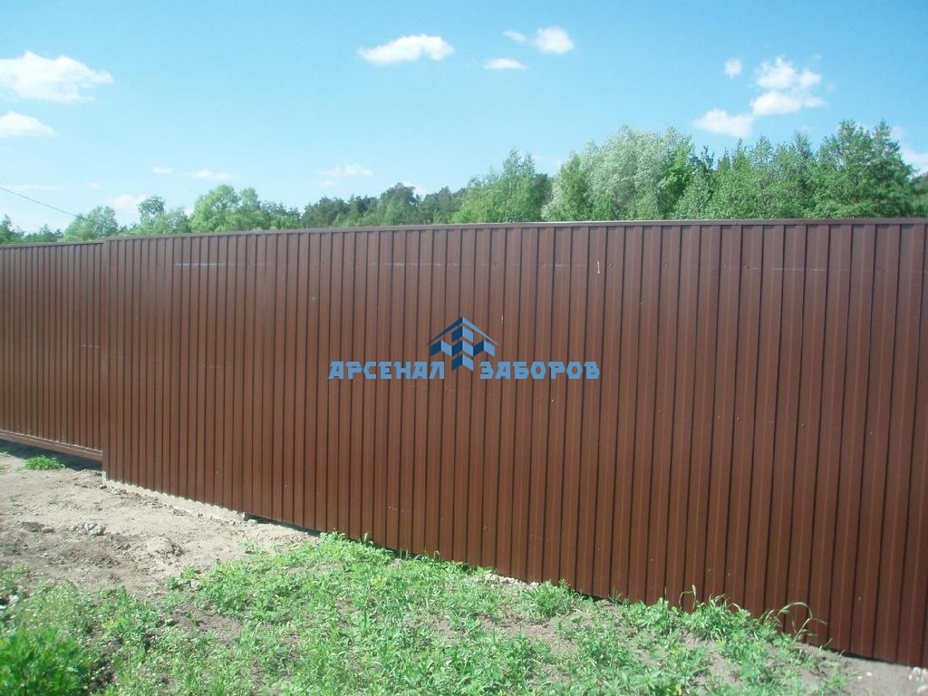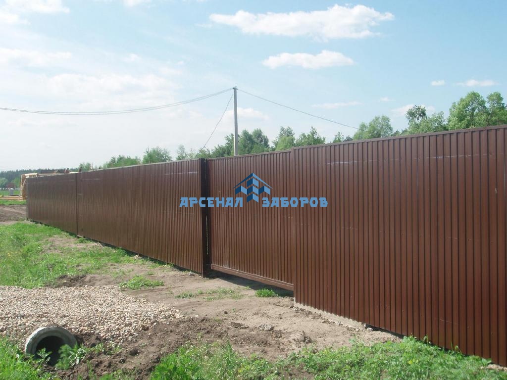 Конструкция забора из профлиста на ленточном фундаменте и с кирпичными столбами