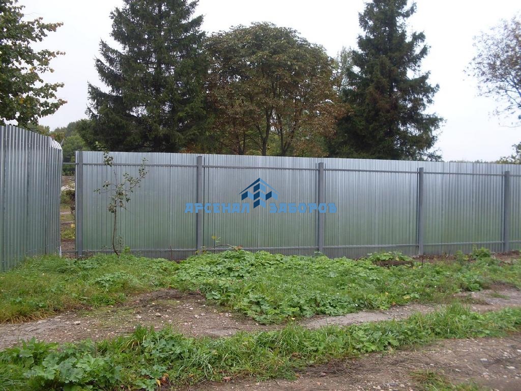 Конструкция забора из профлиста на ленточном фундаменте и с кирпичными столбами