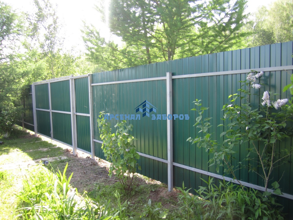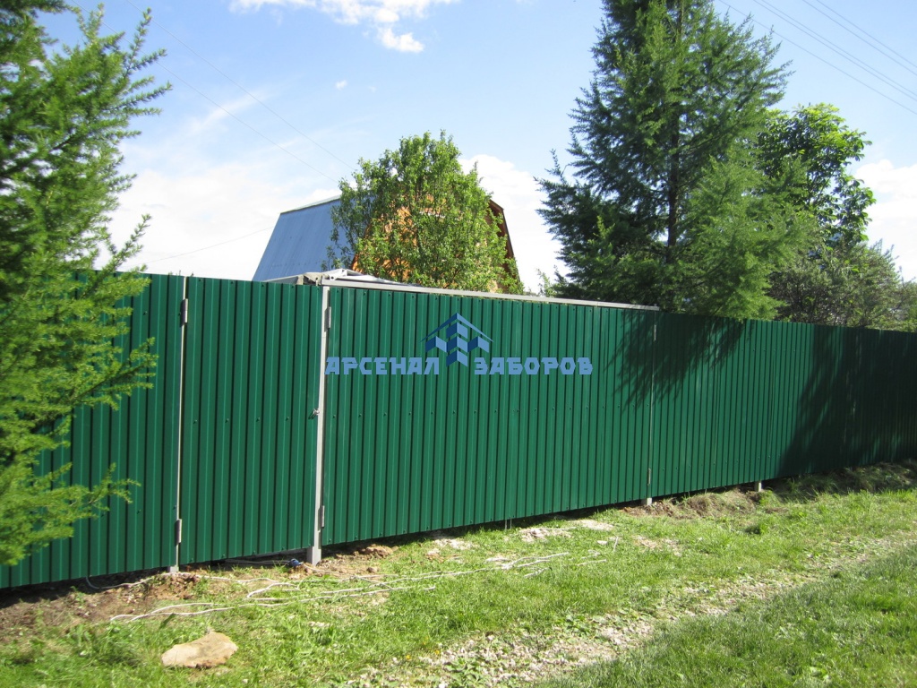 Конструкция забора из профлиста на ленточном фундаменте и с кирпичными столбами
