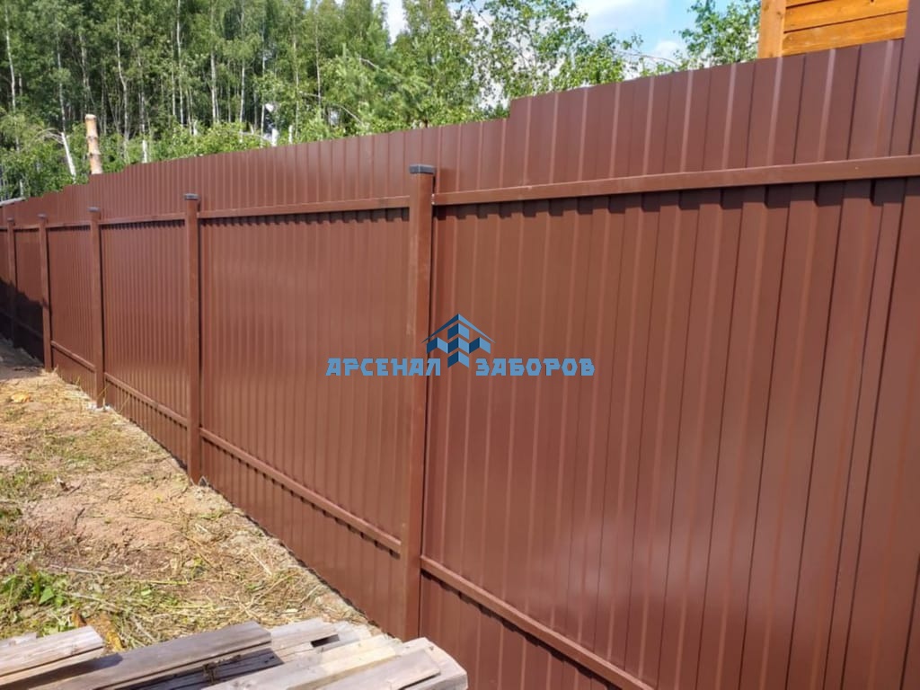 Конструкция забора из профлиста с забивными столбами