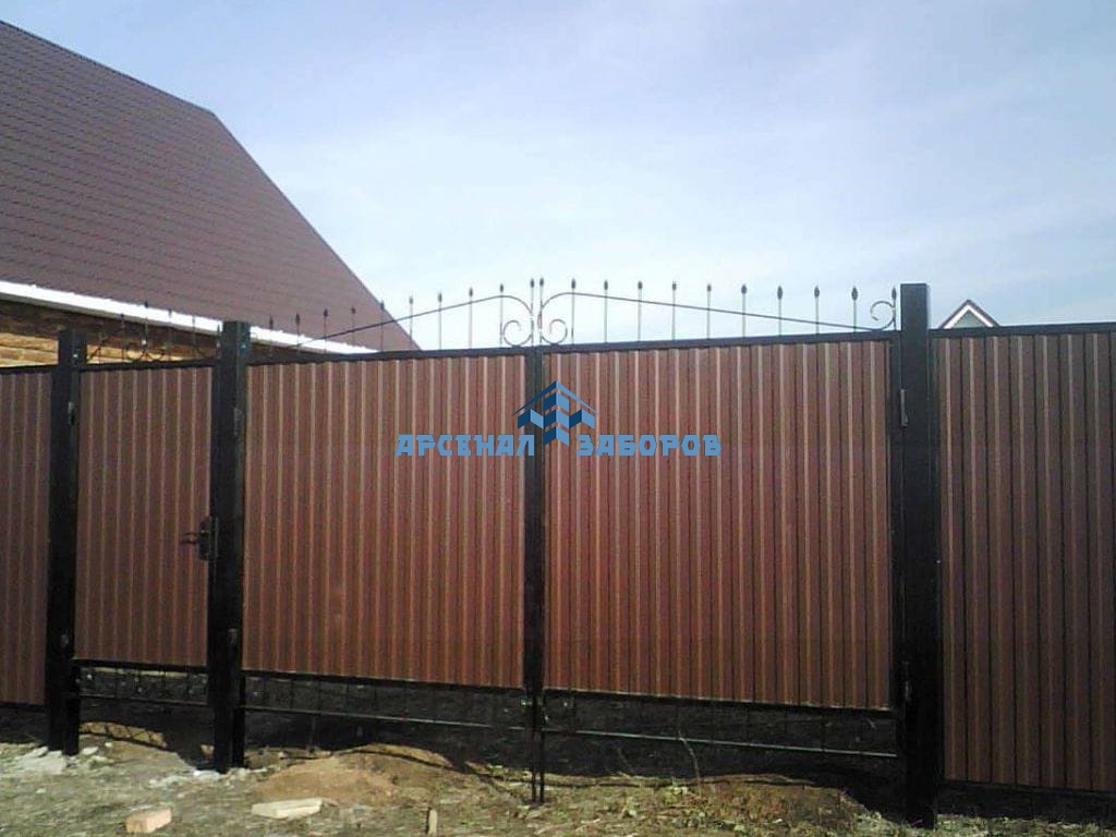 Конструкция забора из профлиста на ленточном фундаменте и с кирпичными столбами