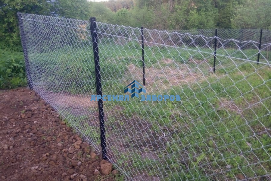 Конструкция забора из сетки-рабицы с протяжкой арматурой