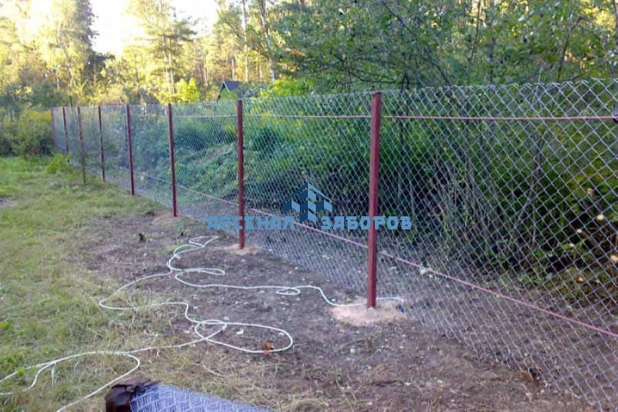 Конструкция забора из сетки-рабицы с протяжкой арматурой