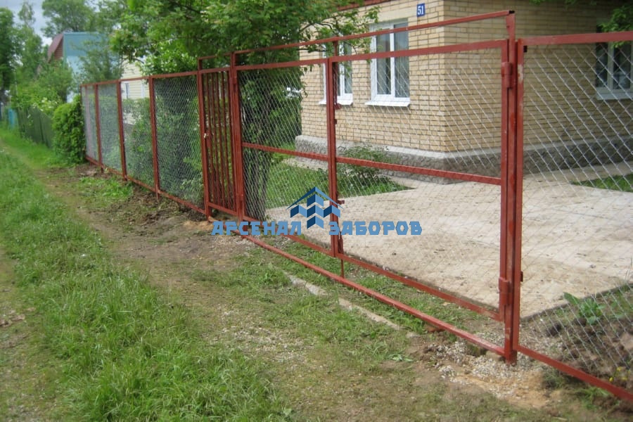 Конструкция забора из сетки-рабицы с протяжкой арматурой